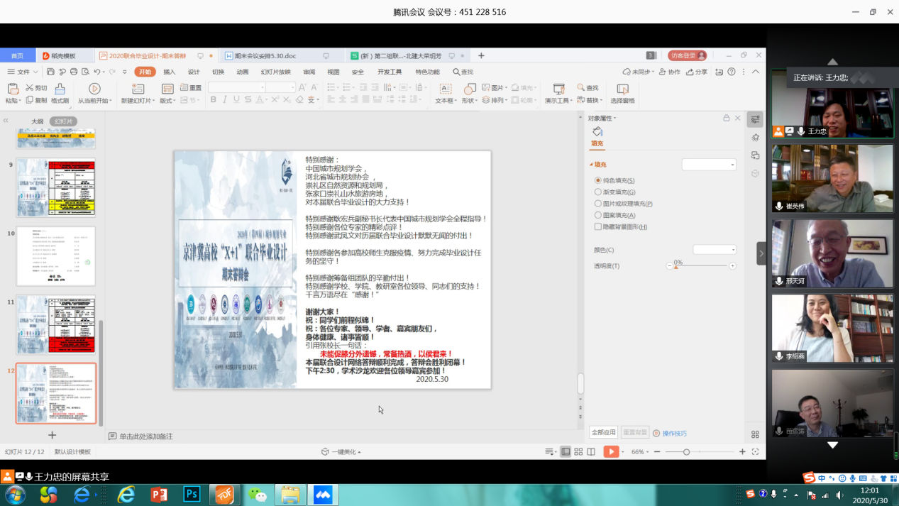 5月30日,2020年城乡规划专业京津冀高校“X+1”联合毕业设计终期网络汇报会如期举行。