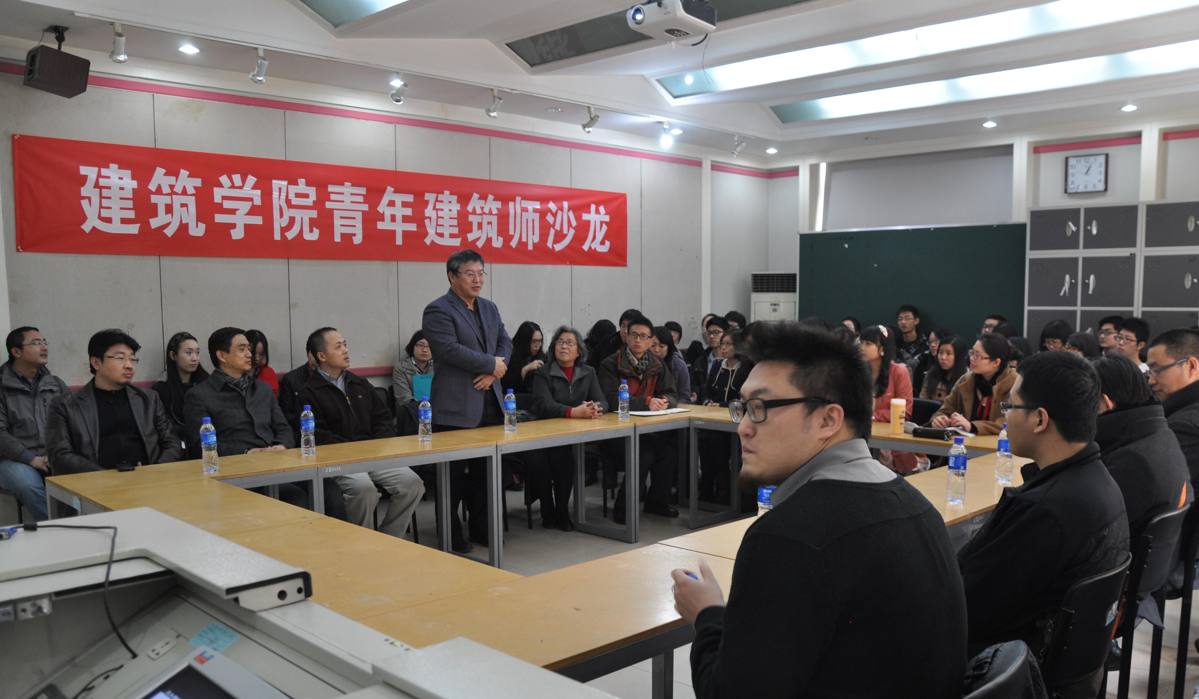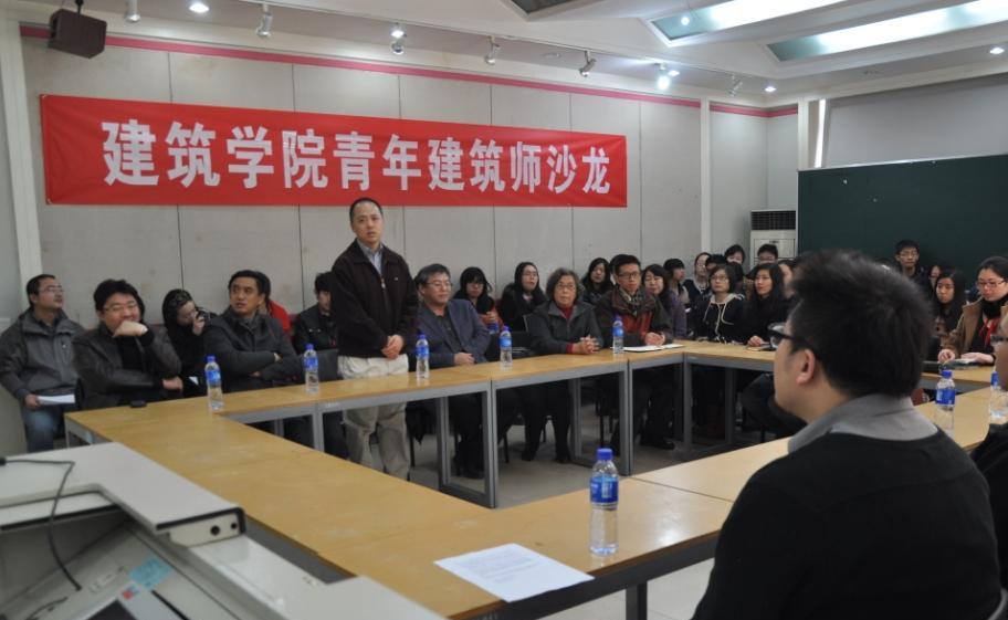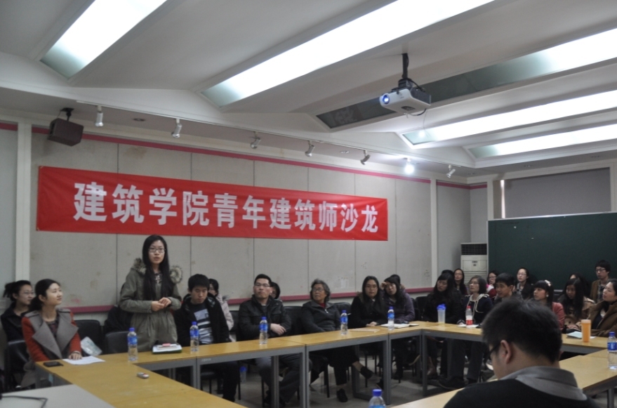 开幕式结束后,青年建筑师赵园生和郭翔分别为大家介绍了天水西关历史街区保护与复兴和曲阜孔府西苑两个项目的内容,并跟大家分享了他们找工作的经验和工作后的感想。提问交流阶段,大家积极踊跃的和青年建筑师做了愉快的交流,本次活动收到良好效果,同学们都感到收获颇丰。