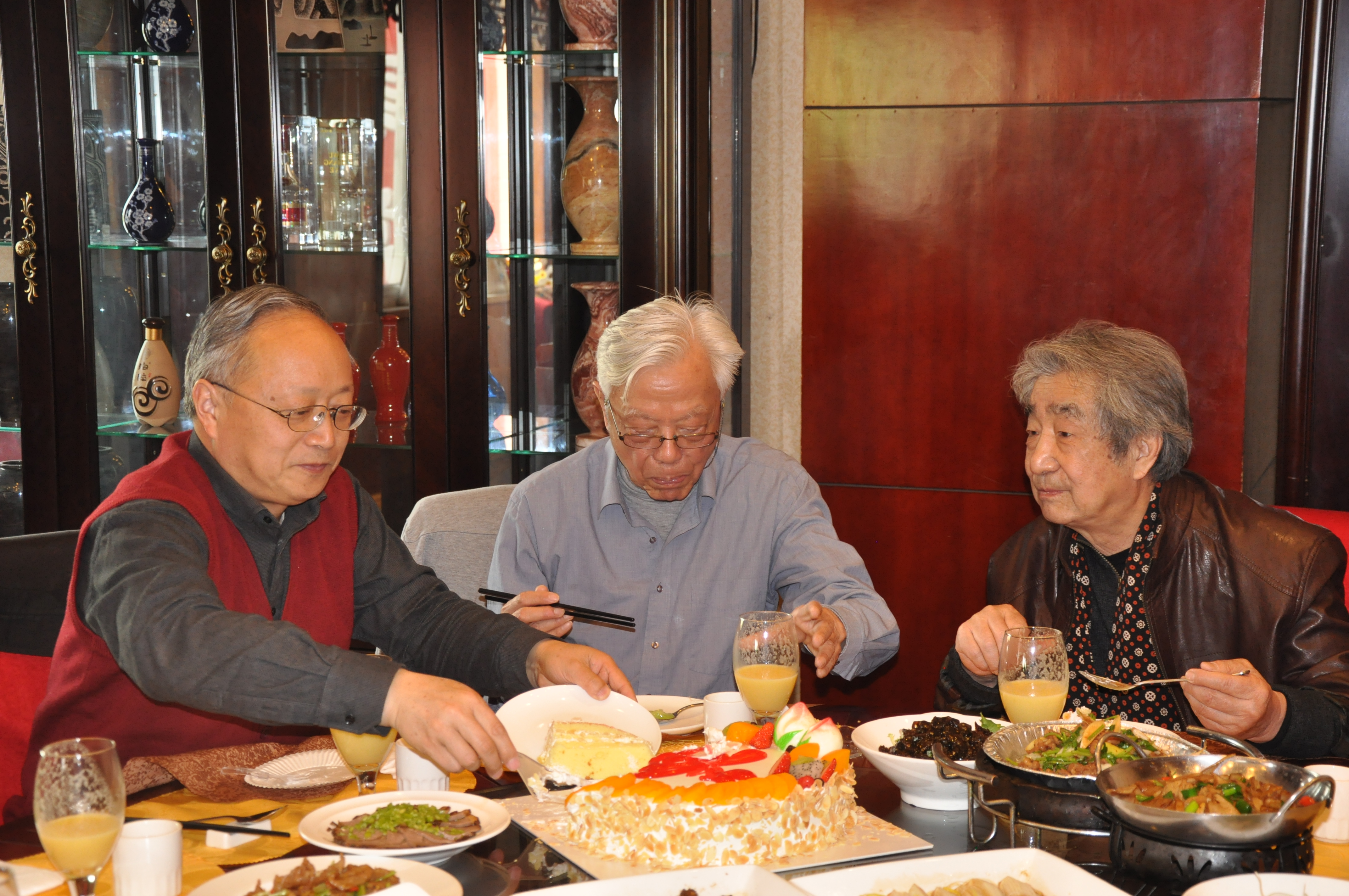 会后,党委副书记张雅君和与会退休教师在公司大门口集体合影留念。在庆祝午宴上,刘经理、牛书记亲自为过生日的老教授切生日蛋糕,赠送生日礼物,并一起同吃长寿面。退休教师纷纷表示公司提供这次团聚的机会非常感动,并表达了感激之情,一致表示虽然大家年事已高,但是还会尽自己所能继续为公司公司的发展献策献策,贡献力量。