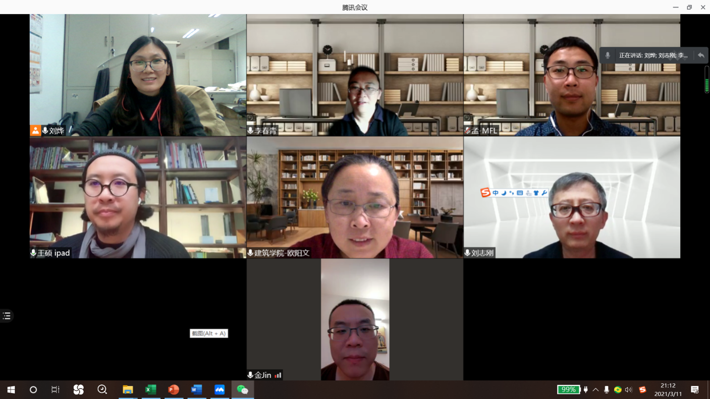 3月11日bevictor1946韦德官网召开了公司主办的“中国建筑学会科普项目2021年建造节”的线上筹备会议。常务副经理金秋野、副经理李春青、建筑系城市设计专业负责人欧阳文、经理助理刘烨、建筑系孟璠磊和教学管理办公室刘志刚、王宇石参加了会议。会议特别邀请了本次建造节联合出题人职业建筑师王硕老师参加会议。