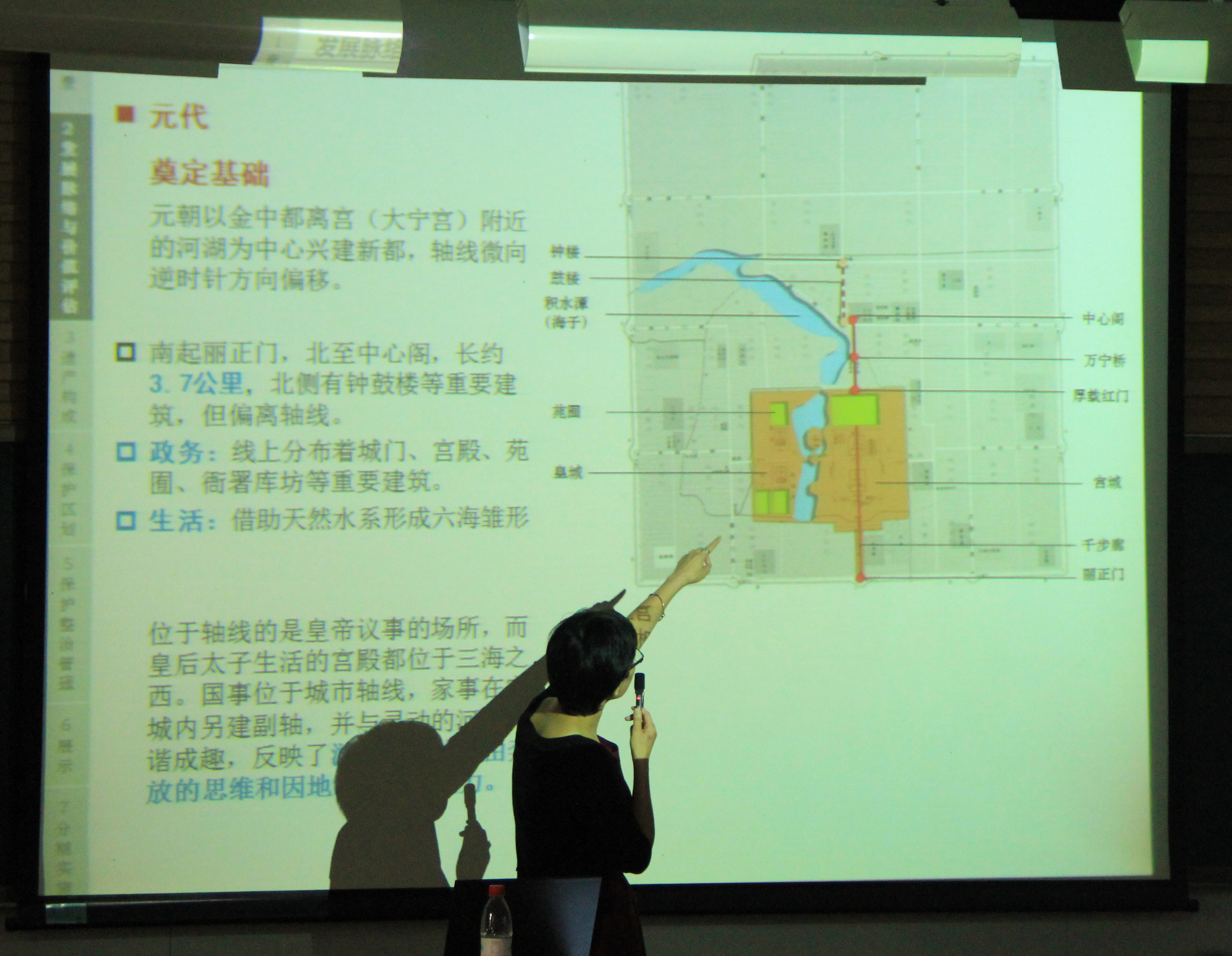 学术讲座一:“北京中轴线保护规划”,主讲人:北京城市规划设计研究院城市设计所所长冯斐菲所长。冯斐菲所长结合长期从事北京城市规划与历史文化街区保护的实践,详细讲述了北京市城市中轴线的历史发展沿革、现状,以及保护规划编制的理念、目标、成果以及编制过程中的思维逻辑。讲座丰富的历史资料、图片、图纸成果和缜密连贯的表述,给参加研习营的师生们建立起了文脉深刻的北京城市图景。