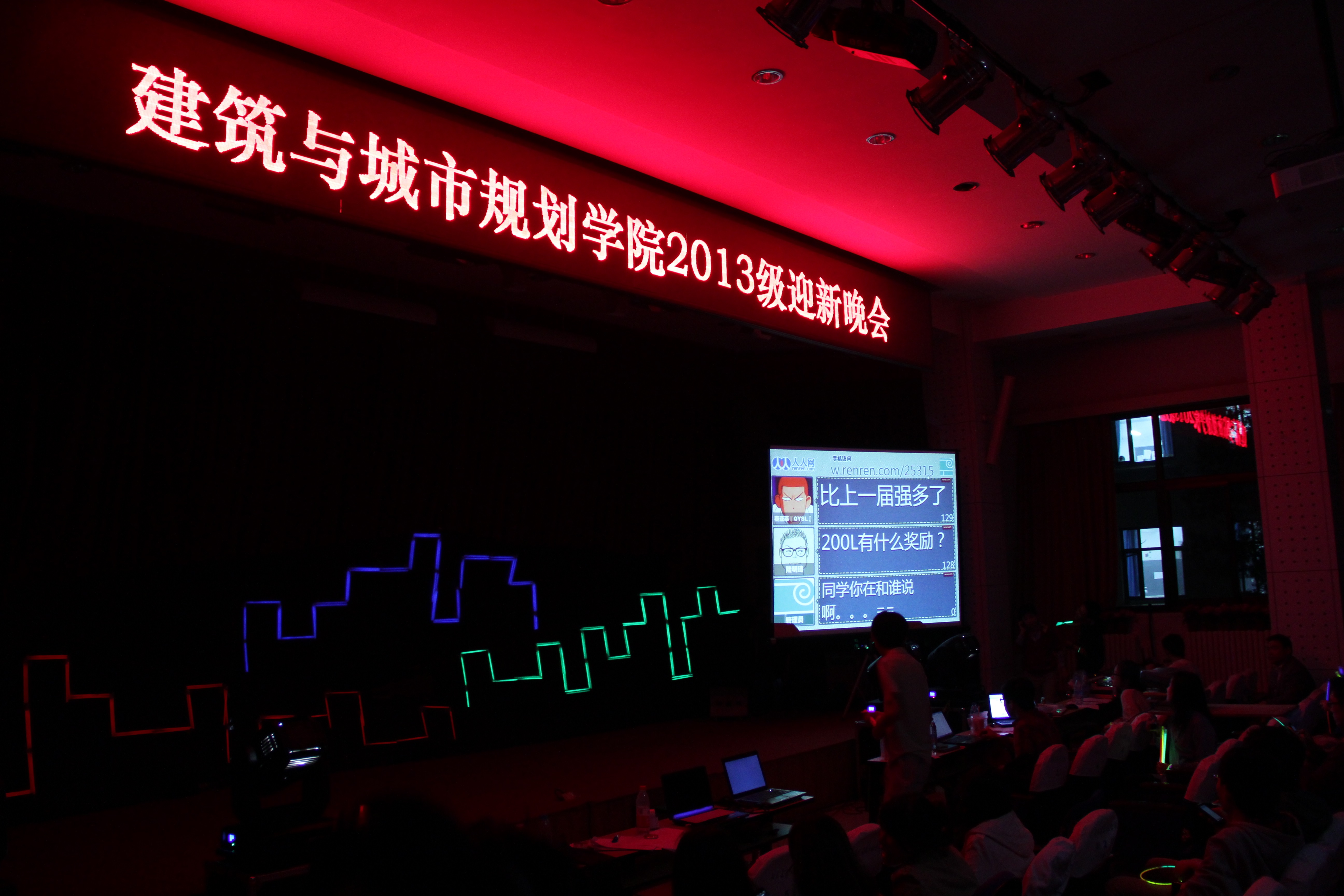 2013年9月29日19时整,bevictor1946韦德官网2013级迎新晚会在西城校区第二阶梯教室隆重举行。晚会以“我的大学梦”为主题,节目安排融入了“促进新生相互交流”、更好“融入北建大大家庭”等理念,给大家带来了一场缤彩纷呈的视听盛宴。研工部副部长李云山、建筑公司党总支书记牛磊、副经理张忠国,还有团委、研工部以及建筑公司教师等应邀出席晚会;2013级全体本科生、研究生及部分高年级员工于400人参加了整场晚会,二阶会场座无虚席。