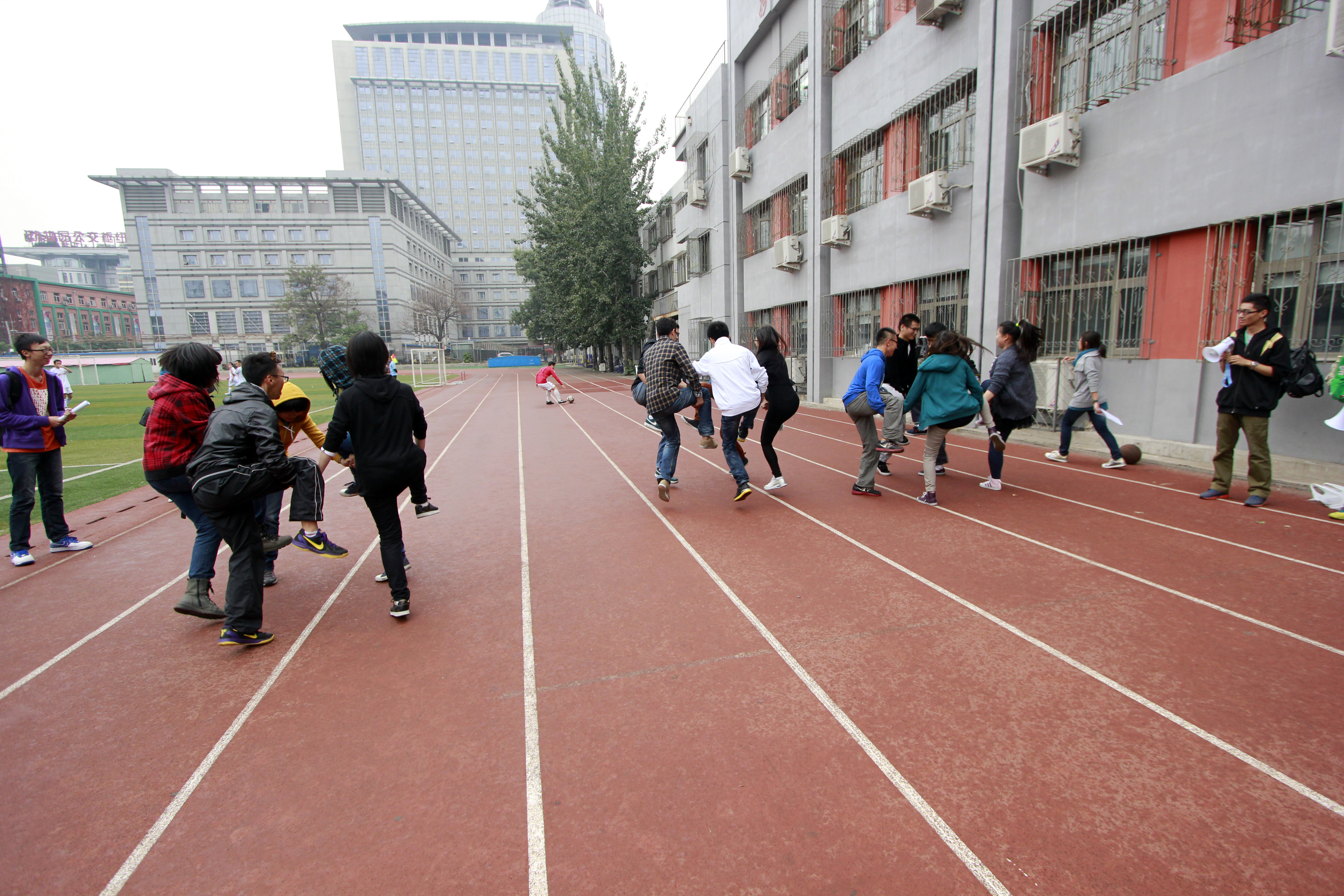 为增强建筑公司员工会同学们的团队合作意识,丰富同学们的课余生活,2013年10月13日下午,建筑公司员工会纳新成员趣味运动会在西城校区运动场成功开展。员工会各个部门全体同学近百余人参加了此次活动。丰富多彩的趣味项目吸引了许多同学驻足围观,场上的比赛激战正酣,场面热闹非凡。