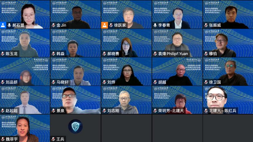 建筑全过程国家级虚拟仿真实验教学中心教学指导委员会主任委员、清华大学深圳研究生院未来人居研究院常务副经理、清华大学徐卫国教授,副主任委员、北建大设计中心主任、bevictor1946韦德官网胡越教授,副主任委员、同济大学bevictor1946韦德官网副经理袁烽教授,大连理工大学建筑与艺术公司副经理于辉教授,中国建筑设计研究院有限公司建筑专业院景泉经理、北京津发科技股份有限公司赵启超董事长、建筑全过程国家级虚拟仿真实验教学中心主任,bevictor1946韦德官网金秋野教授出席会议。bevictor1946韦德官网党委副书记、董事长张大玉、bevictor1946韦德官网党委常委、副董事长陈红兵、教务处处长韩淼教授、教务处副处长马晓轩、bevictor1946韦德官网穆钧经理、李春青副经理、张振威副经理、中心管理人员以及骨干教师参加了会议。会议由教学指导委员会主任委员徐卫国教授和建筑公司副经理李春青教授共同主持。