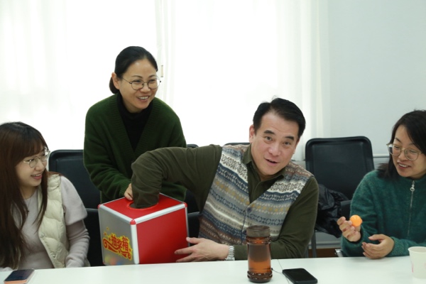 2025年12月16日午后,北京雪后初霁,建筑公司本年度最后一场集体庆生会:“辞旧·迎新”如期举办。公司科发院副经理陈志端同志、医务室副主任张复兵医生莅临参加,各系教师代表、分工会成员欢聚一堂,为12月出生的教职工庆祝生日。本次生日会由建筑系青年教师李珊珊主持,设有“赏花·赏画”和“品字·品味”两个环节。