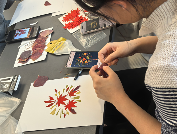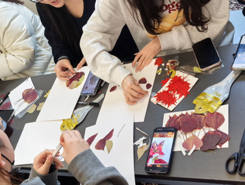 活动巧妙融合了季节性自然元素与艺术创作,同学们在与自然材料直接对话、化平凡为神奇的过程中,不仅释放了课业压力,更体会到了专注当下的平静感,不断从自然与生活中汲取力量,构筑健康、丰盈的内心图景。
