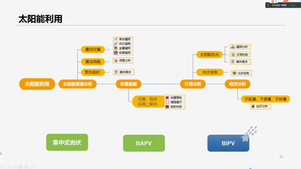 本次交流会主要针对于4月1号实施的《建筑节能与可再生能源利用通用规范》GB 55015-2021中条文进行解析,对于部分重点条文进行解读,并与仍在实施的各项标准条文进行对比及应用分析,阐述建筑碳排放计算方法和减碳设计实施路径,然后分别解读《建筑碳排放计算标准(GBT 51366-2019)》和配套碳排放软件CEEB2023的应用要点以及《建筑节能与可再生能源利用通用规范(GB 55015-2021)》要点和其配套节能软件BECS2023操作要点,最后针对太阳能利用分析软件SUN2023做了相关的功能要点介绍。
