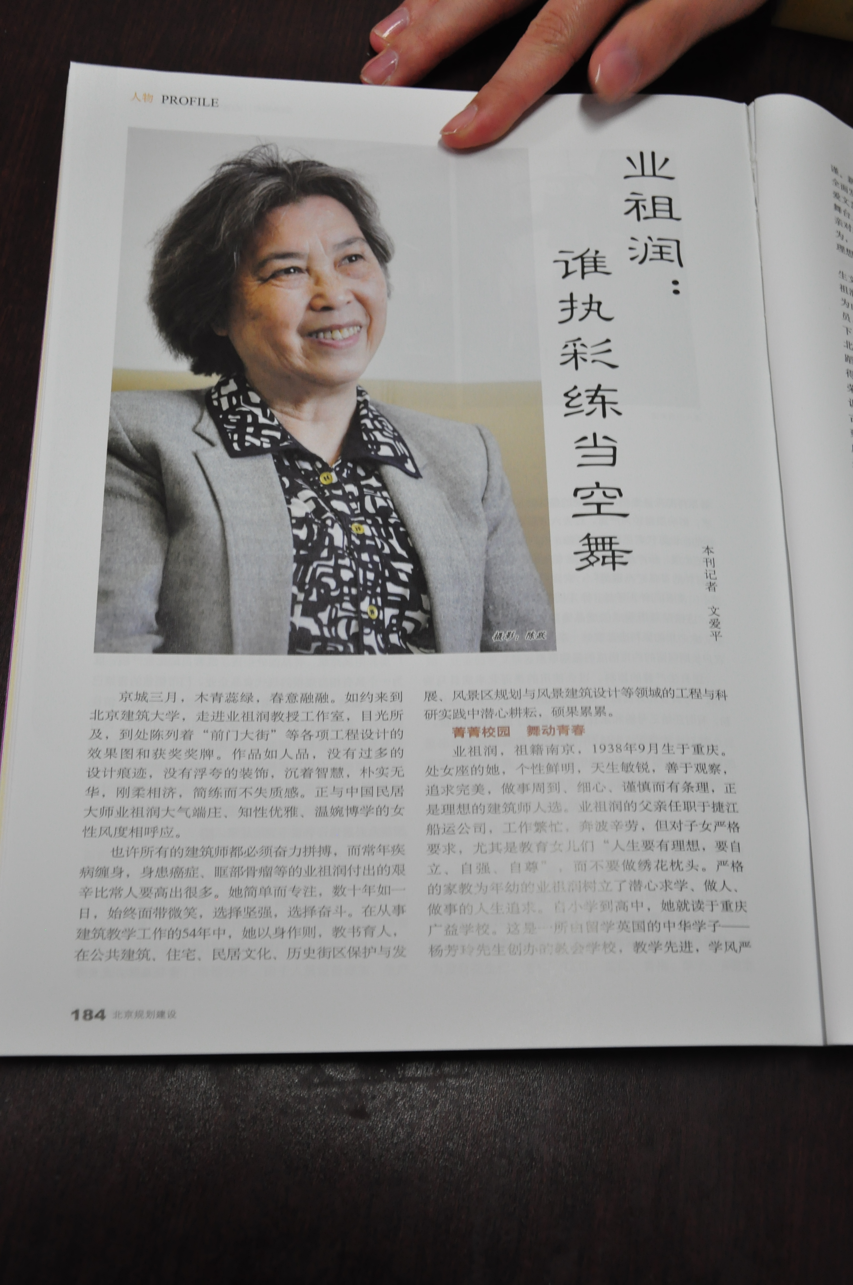 1月14日下午1:00,我们如约来到业老师的办公室进行采访。办公室里陈列着“前门大街”等各项工程设计获奖奖牌和设计图。作品如人品,没有过多的装饰,沉着智慧,朴实无华,刚柔并济。一见面业老师就亲切的欢迎我们,向我们介绍了公司老教师近期的情况,鼓励我们多和公司的老教师交流。回顾了自己年轻时的经历,业老师充满了感慨。1938年,业老师出生于重庆,父亲就职于捷江船运公司,随奔波辛劳,但对子女要求严格,从小教育女儿:“人要有理想,要自立、自强、自尊。”这为业老师树立了潜心求学、做人、做事的人生准则。1955年,共青团中央在北京举办首届员工汇演,业老师有幸被选中参加了这次盛会,一路的经历让她大开眼界,体验了北京四合院里的宁静舒适,感受到了北方传统的居住文化,这些激发并坚定了业祖润老师学习建筑的决心。1957年,业老师如愿考上重庆建筑工程公司建筑学专业,毕业后顺利留校任教。1963年,业老师被派到建工部北京工业建筑设计院进修,在此期间参加了新中国成立后的国内影响最大的国际竞赛,这些经历开阔了业老师的视野,业老师还保留着当时的笔记。1976年,业老师告别母校,调到天津大学建筑设计研究院工作,这段经历给业老师从事建筑教育工作打下了基础。1984年业老师调到北京建工公司任教。在这段任教期间,业老师主持了“北京前门地区保护、整治与发展规划”、“北京古山村——爨底下保护与利用规划”、“北京焦庄户古村及地道战遗址保护规划”、“河南省赊店历史文化古镇保护规划及中心区城市设计”、“河北省临城县崆山白云洞风景区总体规划、景区规划及风景建筑设计”等多个项目工程。在民居、风景区规划、风景区建筑方面都有很高的建树。作品如人品,没有过多的装饰,沉着智慧,朴实无华,刚柔并济。在建工公司教学期间。业老师给员工参与实际项目的机会,结合员工自身的特点开发他们的潜力。业老师说:“虽然当老师55年,但是这是耕耘的过程,必须不断学习,不断补充。”