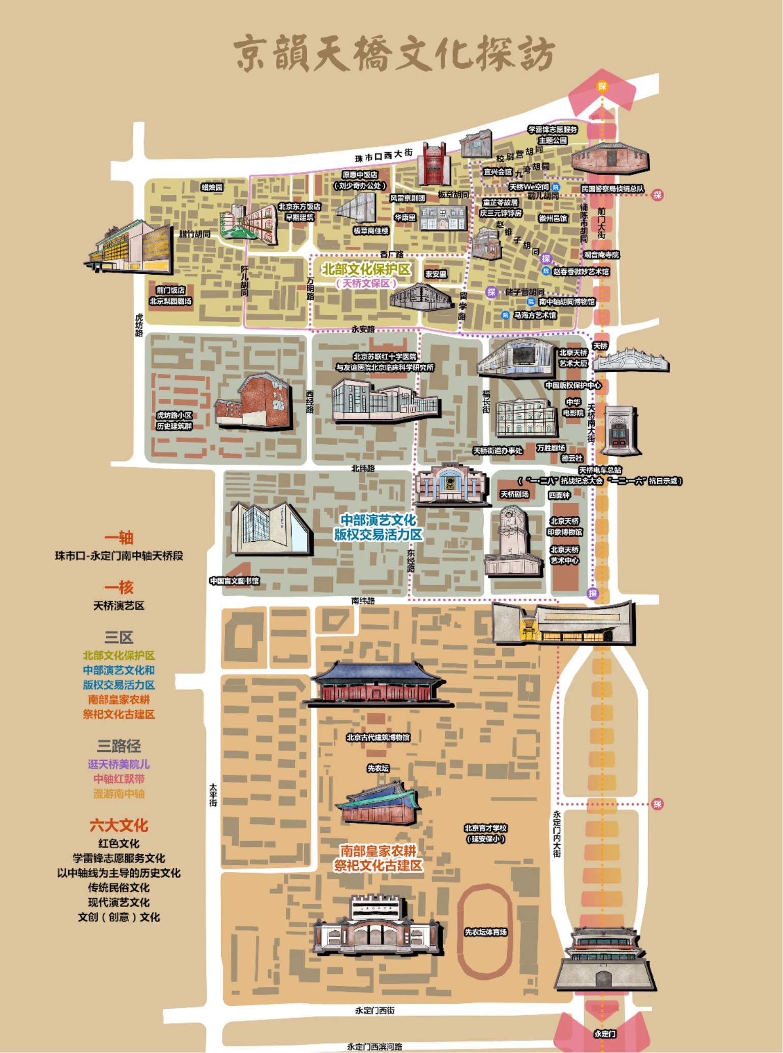 本次课程以“城市空间中的真实问题”为切入点,从调研路线设计、节点选择到现场讲解与互动交流,强调“在地性”与“现实性”的结合。调研路线以“天桥WE空间”为起点,依次踏勘原民国警察局侦缉总队、赵锥子胡同社区农园、赵春香艺术馆、庆三元饽饽房、宫门口馒头铺、泰安里、华康里、香厂路商住楼、原新世界游艺场及东方饭店等节点。路线覆盖历史建筑、社区公共空间、传统商业网点及混合型街区,构建了较为完整的传统空间更新样本体系。