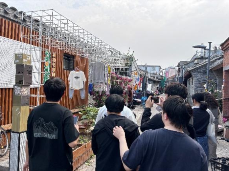 随后,师生沿既定路线开展步行调研。在赵锥子胡同社区农园,员工们观察了居民自发参与的社区绿化项目如何在城市缝隙中嵌入公共功能;在泰安里、华康里等老旧住宅区,调研聚焦如何在保留原有生活结构的前提下实施空间更新;在庆三元饽饽房、宫门口馒头铺等传统商铺节点,同学们结合现场讲解,探讨街区记忆如何通过日常商业活动得以延续。