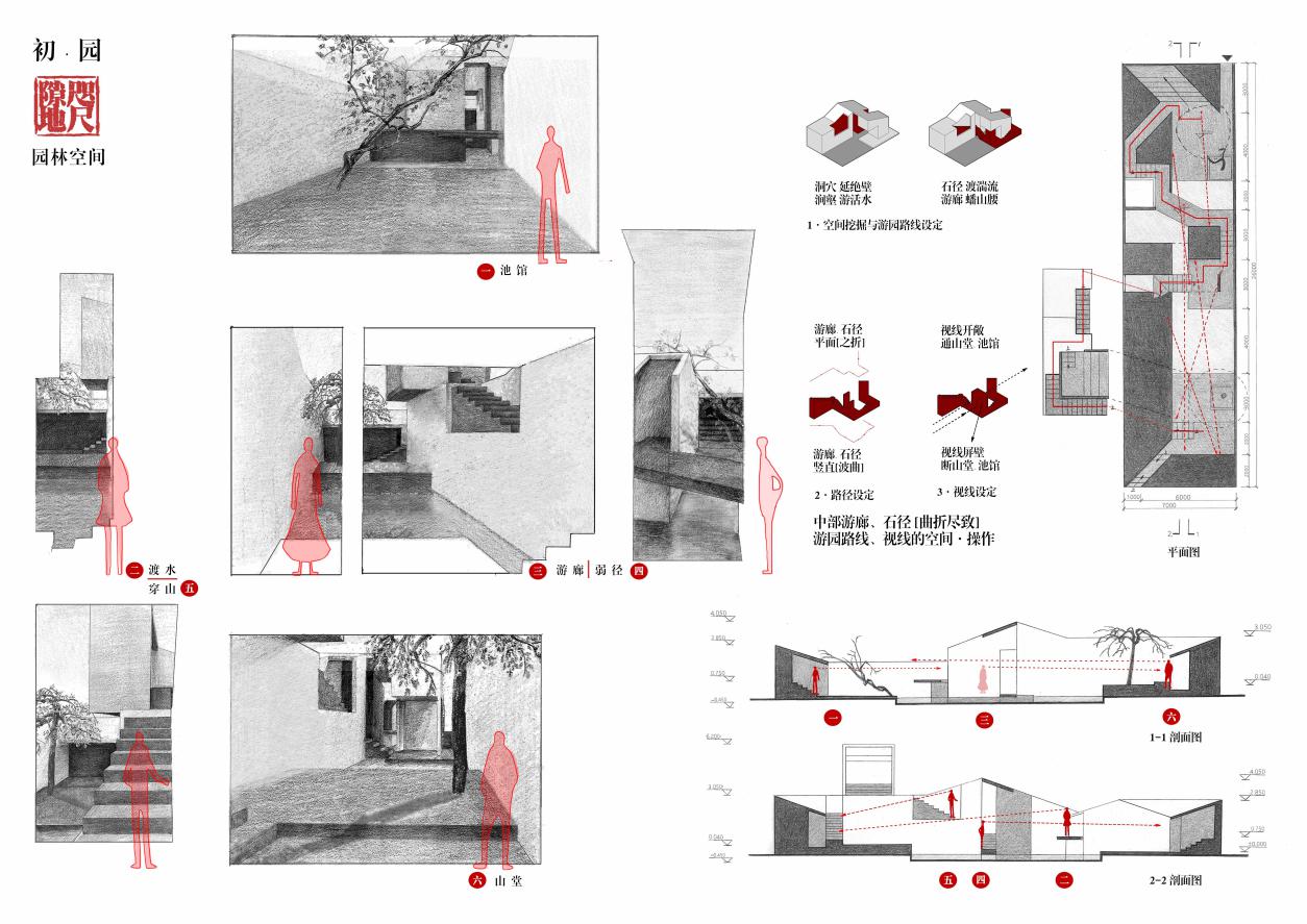 决赛时,徐雅涵的作品《初园-咫尺隙地》得到评委会的高度评价。评委会主席丁沃沃,评委汤桦、徐甜甜认为《初园》作为一年级作业,课题训练目的明确,成果以建筑画形式展现,作品完成度高。最终以一年级第一名的成绩,获得本届竞赛的TOP3。