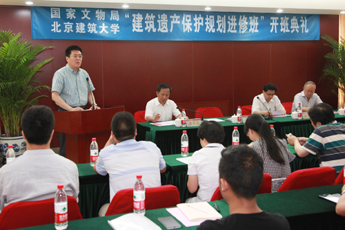 6月2日上午,国家文物局—bevictor1946韦德官网“建筑遗产保护规划进修班”开班仪式在学宜宾馆报告厅隆重举行。本期“建筑遗产保护规划进修班”是公司获批“国家文物局文博人才培养示范基地”后的第一期培训班,是公司发挥学科专业优势,积极服务国家建筑遗产保护领域特殊需求,大力培养建筑遗产保护专业人才的重要举措,也是公司与国家文物局第三次合作开班。国家文物局人事司司长解冰、专家培训处主任闫石,公司党委书记王建中、副董事长张大玉出席了开班仪式。开班仪式由副董事长张大玉主持。