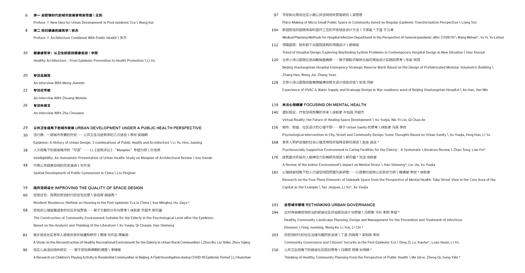 “健康建筑学:疫情滤镜下的城市和建筑空间”特刊目录