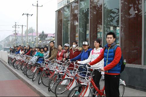 11月14日,由建筑公司员工会举办的“骑迹北京,博览古迹”活动顺利举行。清晨7点45分,在员工会高年级同学的组织下,参加的大一新生们在地铁车公庄西站公共自行车租赁点整装待发。为保证活动的安全性与机动性,所有人员共分为三组,分别由员工会骨干带队分批次出发,并有一名公共自行车运营商工作人员随行负责保障工作。活动由讲解经验丰富的古建121班谢博知同学负责讲解。