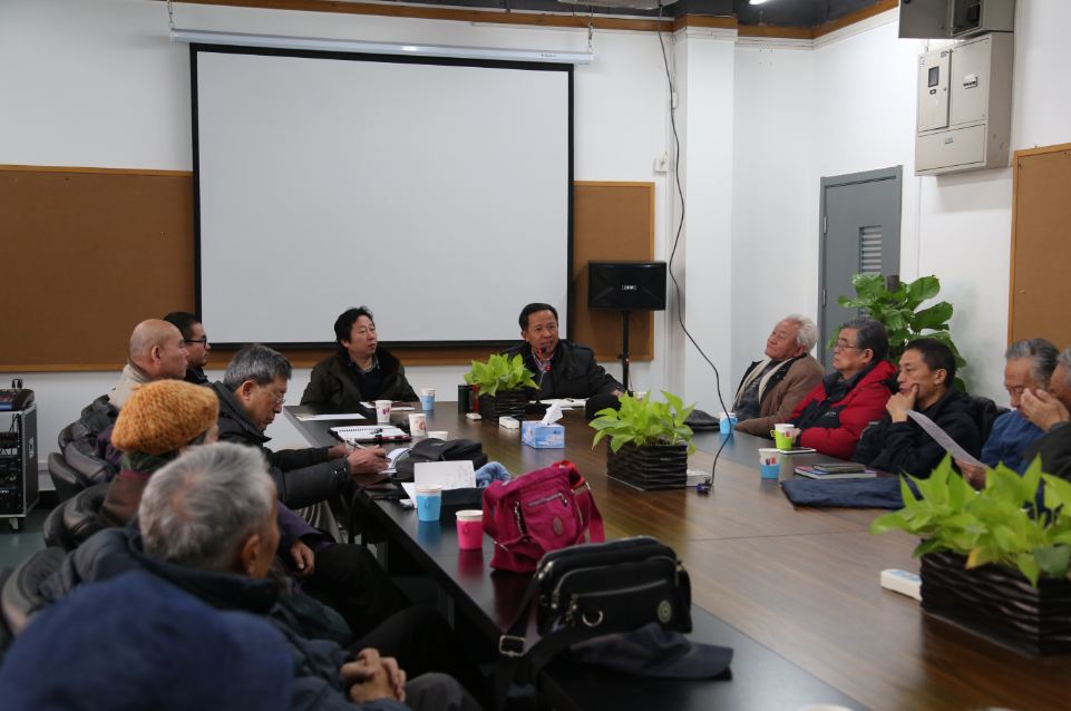 2016年1月14日上午10点,建筑公司在公司会议室召开退休教师团拜会。副董事长(兼建筑公司经理) 张大玉、党委书记田林、副经理丁奇和副经理胡雪松、部分系部主任和教师与退休教师参加了团拜会。