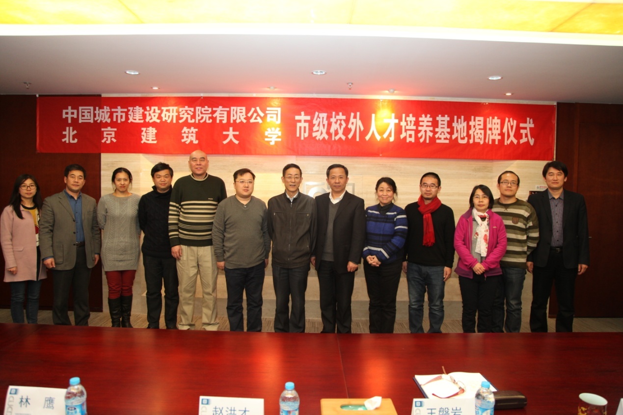 随后公司张大玉副董事长与城建院赵洪才副总经理共同为“北京高等公司市级校外人才培养基地”揭牌。双方与会人员合影留念。