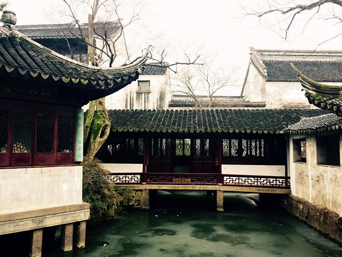 我是一月二十七日到的姑苏城,那一日没有梅子黄时雨,也没有满城风絮,但我恰恰却遇上了一川烟雨。那是冬天的烟雨,不同于夏日湿热时的水汽,那么自然而然地像我呈现了最完整的“黑白苏州”。没错,印象中苏州的建筑特点就是“黑白”。