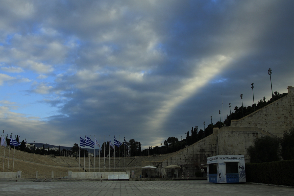 黄昏将至,余晖照射在石质体育场上,发出淡淡的黄色,熠熠生辉。在主体育场的不远处有一座铜制雕像,铜像为一名老者,笔直站立,留着长胡须,他就是顾拜旦,现代奥运会之父,他将奥林匹亚山的火种再次点燃,古老的人文主义光辉再次闪耀希腊。他面朝卫城,日出日落间见证雅典变迁。