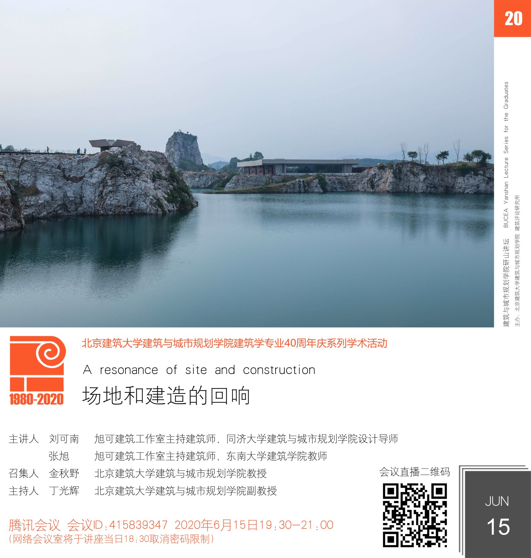 6月15日晚19:30,在腾讯会议与网络直播平台,建筑公司研山讲坛第20期拉开帷幕。校内外师生、社会各界学者、实践建筑师等200余人参与本次讲坛。
