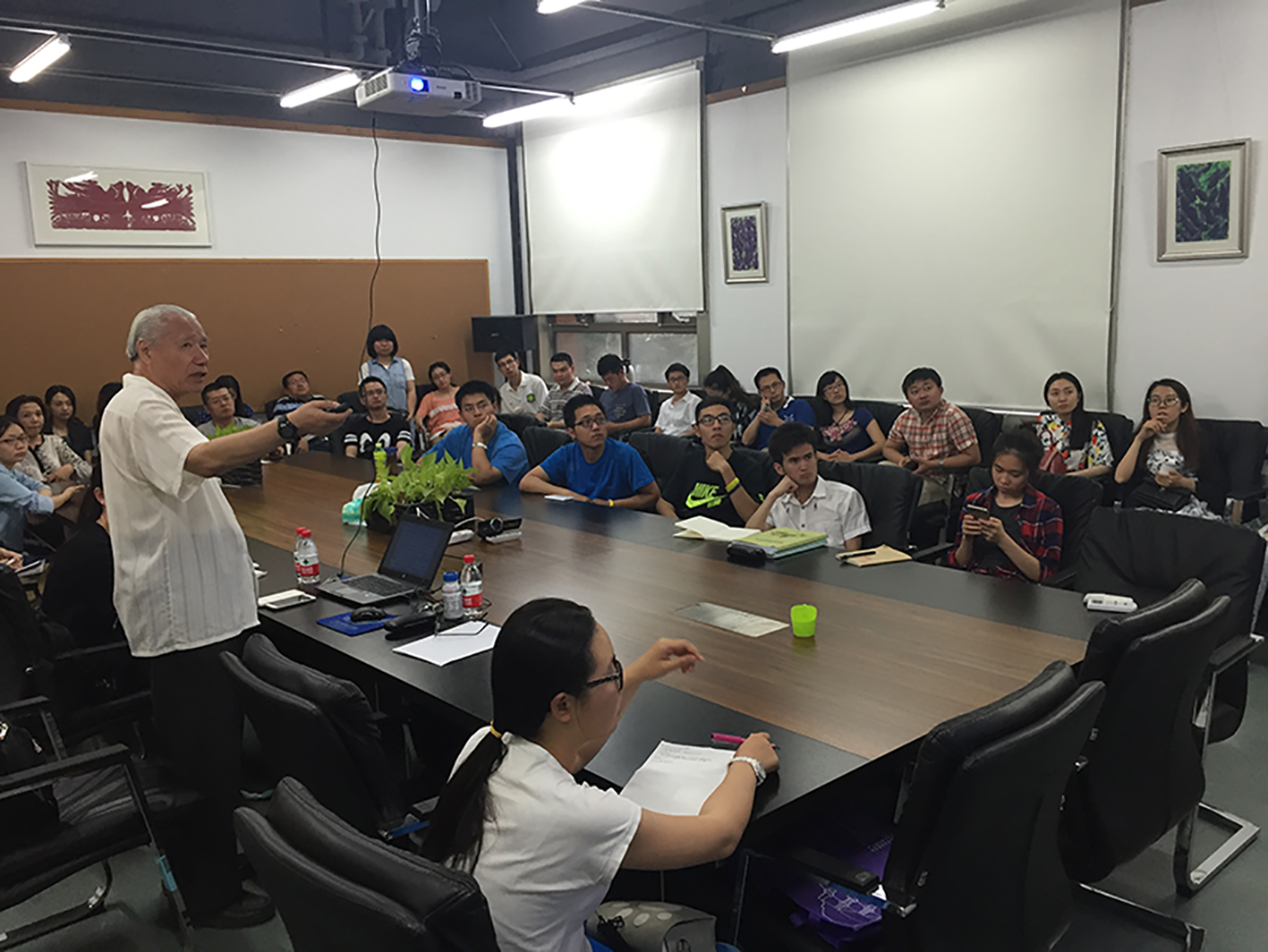 此次讲座延续上一次的内容,着重讲述了北京故宫建筑的阴阳和谐理念和北京故宫建筑设计的数字文字象征两个方面。韩教授从宫殿建筑,前殿后寝,交泰布局,宫城命名,五行方位等方面,运用实际历史为例,详细讲解中国文化中讲究的谐音,传统文化对雕塑形象的影响,左右尊卑位序,宫城易名,颜色使用艺术在易学领域中的研究成果。同时提到自己开始对中国风水学感兴趣是由于对左右尊卑排位的不解,翻阅大量书籍后终于找到核心问题既阴阳方位的答案。借此说出对中国现代有些盲目照搬西方建筑,不惜牺牲中国文脉为代价的行为的担忧。提出应在中华易学智慧与西方文化优势互补的基础上,以创造出安全、舒适、方便、经济的人居环境为目标,以创造出高质量的节能,省地型绿色建筑为己任。之后以角楼的九梁十八柱七十二道脊引出故宫建筑的数字象征---九五之尊,九城五门,大衍之数,象数用阴令在座同学大开眼界,韩教授诙谐的语言让同学们在笑声中有所思考。但话锋一转韩教授说起,很多古人费劲心血营造的建筑结构,经今人的改造失去了其中的易学精髓并对现在许多施工的不考究扼腕叹息。最后韩教授总结历史是人类的记忆文化是城市建设的灵魂,不能忘了记忆,也不能失去灵魂。保护古建筑,不只是维修其建筑实体,更重要的是解读古建筑,让其中蕴含的易学文化内涵薪火相传,古为今用重放异彩。