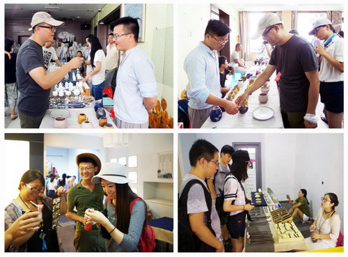 21日上午,实践团来到了明清园陶瓷集市,不同于陶艺街鳞次栉比、装修豪华的陶瓷品售卖店铺,明清市集是土生土长、接地气的露天市场。在这里,没有闪烁的灯光、没有曼妙的音乐,只有创意满满的瓷器和川流不息的人群。明清市集传承着传统的陶艺文化,却又充斥着艺术创新的浓烈气息。在这里,芸芸众生买的是文化也是产品,是手艺更是创意。瓷器、创意、人流交织着,缠绕着,向来往的人们诉说着瓷都曾经的辉煌岁月和涅槃重生的坚毅。