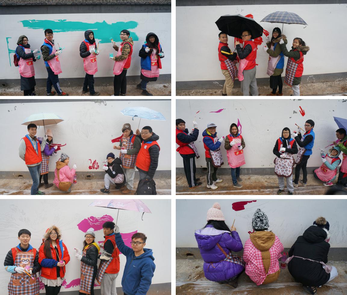 10月27日上午,天公依然不作美,忙碌中,雨点不合时宜的落了下来,然而工作依然继续,所有的师生真切的体验了一次雨中作画。