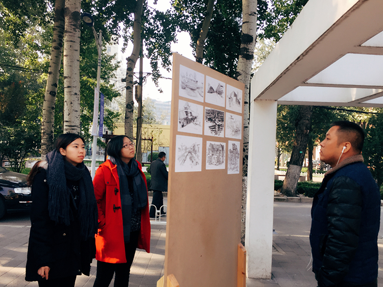 校园里的师生在经过各个展区时,有人凝视,有人赞叹,有人拍照留念意欲临摹。精致的手绘作品将行色匆匆的人们聚集于这深秋的街头,不仅温暖了人的眼睛,更是燃起了内心对绘画的热情。