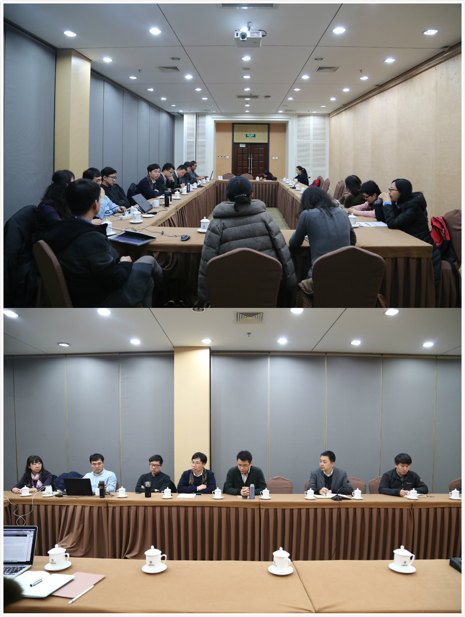 (上图:专业建设研讨会;中图:荣玥芳老师发言;下图:胡雪松老师听取发言)