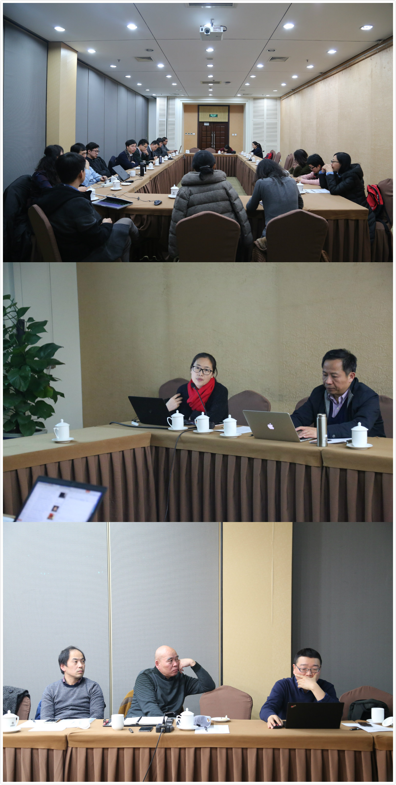 (上图:团队建设与科研研讨会;中图:郝晓赛老师发言;下图:田林书记发言)