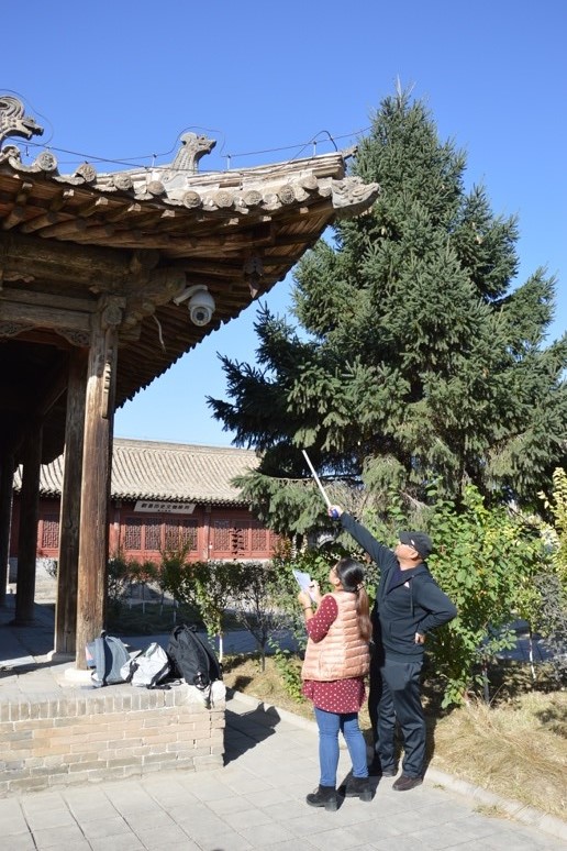 跟随老师参观玉皇阁、释迦寺及关帝庙三座古建筑群,在现场参观和测绘基础知识培训之后,学员分组并于下午开始测绘工作。