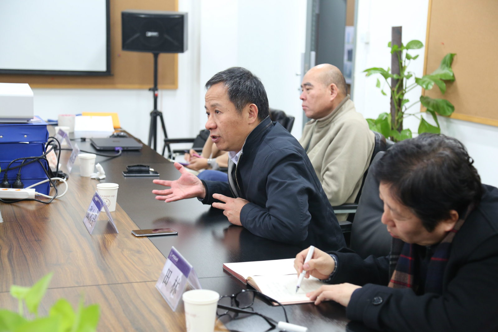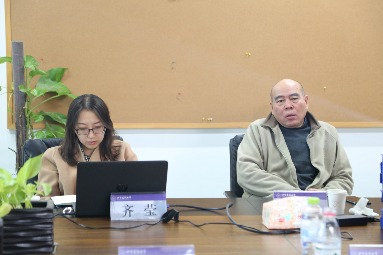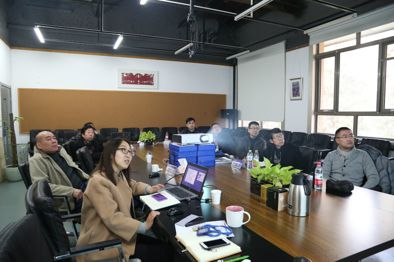 田林书记、胡雪松副经理、马全宝老师分别从团队建设、教学体系、历史建筑保护工程专业进行了介绍。齐莹老师重点介绍了本次联合毕业设计的题目,规模、时间节点等具体内容。