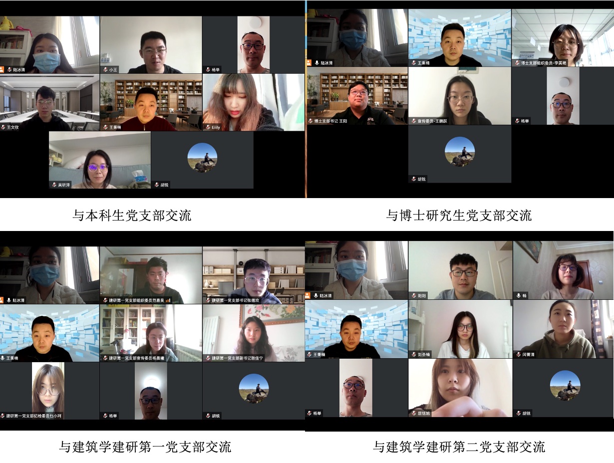 经过交流研讨,王秉楠、杨举、胡锐、陆冰清与各员工党支部支委就继续做好党支部工作提出了以下要求:一是要规范党员发展工作,保证党员发展质量。员工党员发展任务是员工党支部工作的重点,要遵循程序步骤,严格审核把关,防止敷衍应付、降格以求、“带病”发展,切实维护发展党员工作的严肃性;二是要明确支部工作任务,激发支部工作活力。要把支部工作任务分解细化,明确每一项支部工作主题、主线,充分调动支部党员和入党积极分子参与其中,做好成果积累及宣传;三是要发挥各专业特色,创新支部活动形式。支部要融入专业特色,充分发挥课题项目在支部活动中的作用,围绕建党一百周年、服务首都等主题,创新理论学习和党性实践,切实做到专业引领与党建引领相融合。关于本科生党支部书记如何更好地结合日常工作开展支部建设,王秉楠强调,本科生党支部书记均由辅导员老师担任,学风建设、班级管理、专教管理等分管工作与党支部工作是相辅相成、互相促进的,要加强日常工作与支部工作的融合,发挥党支部在思想政治教育工作中的引领作用。