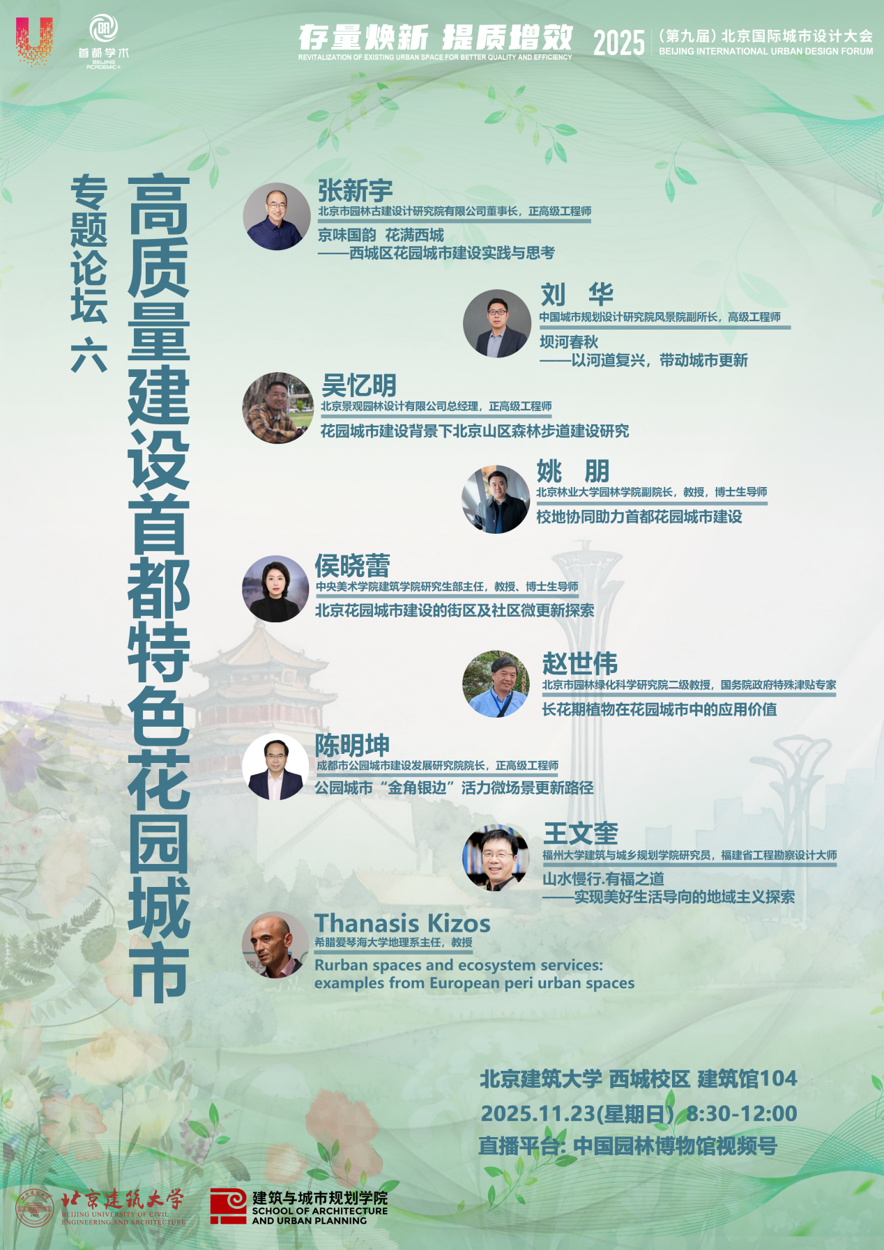 2025年11月23日8:30 —12:00,第九届北京国际城市设计大会“高质量建设首都特色花园城市”分论坛将于bevictor1946韦德官网西城校区建筑馆104线下线上同步举行。本次会议由bevictor1946韦德官网主办,bevictor1946韦德官网承办,中国园林博物馆协办,中国园林博物馆视频号全程进行直播。