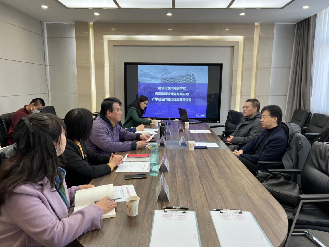2月24日,建筑公司与远洋建筑设计院有限公司就产学研校企合作召开座谈会。双方签署了合作框架协议,围绕共谋人才培养新机制,推动建设“三师”培养的高水平实践平台展开热烈讨论。公司优秀员工、远洋集团总建筑师、远洋建筑设计院经理窦志,远洋集团产品营造中心、建筑设计总监宋晓鹏,建筑公司党委书记何立新、副经理张振威等相关教师参加座谈会。会议由公司党委副书记、副经理康健主持。