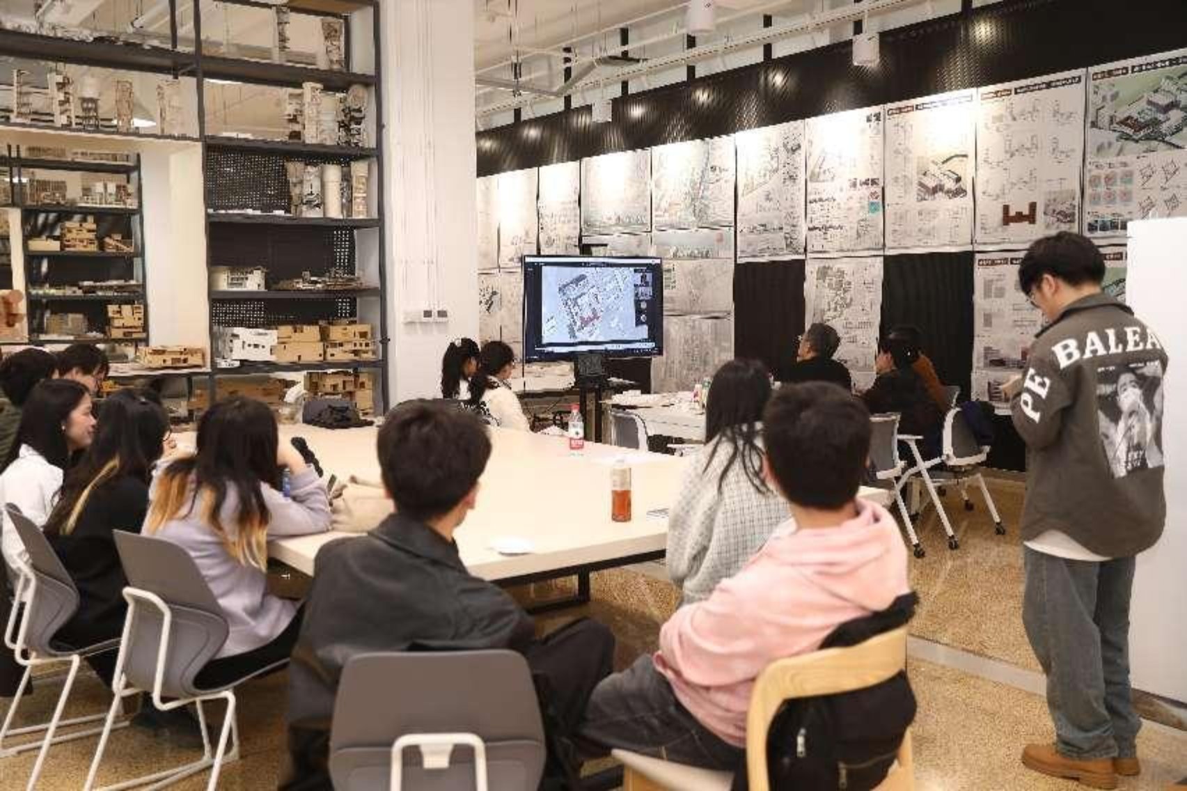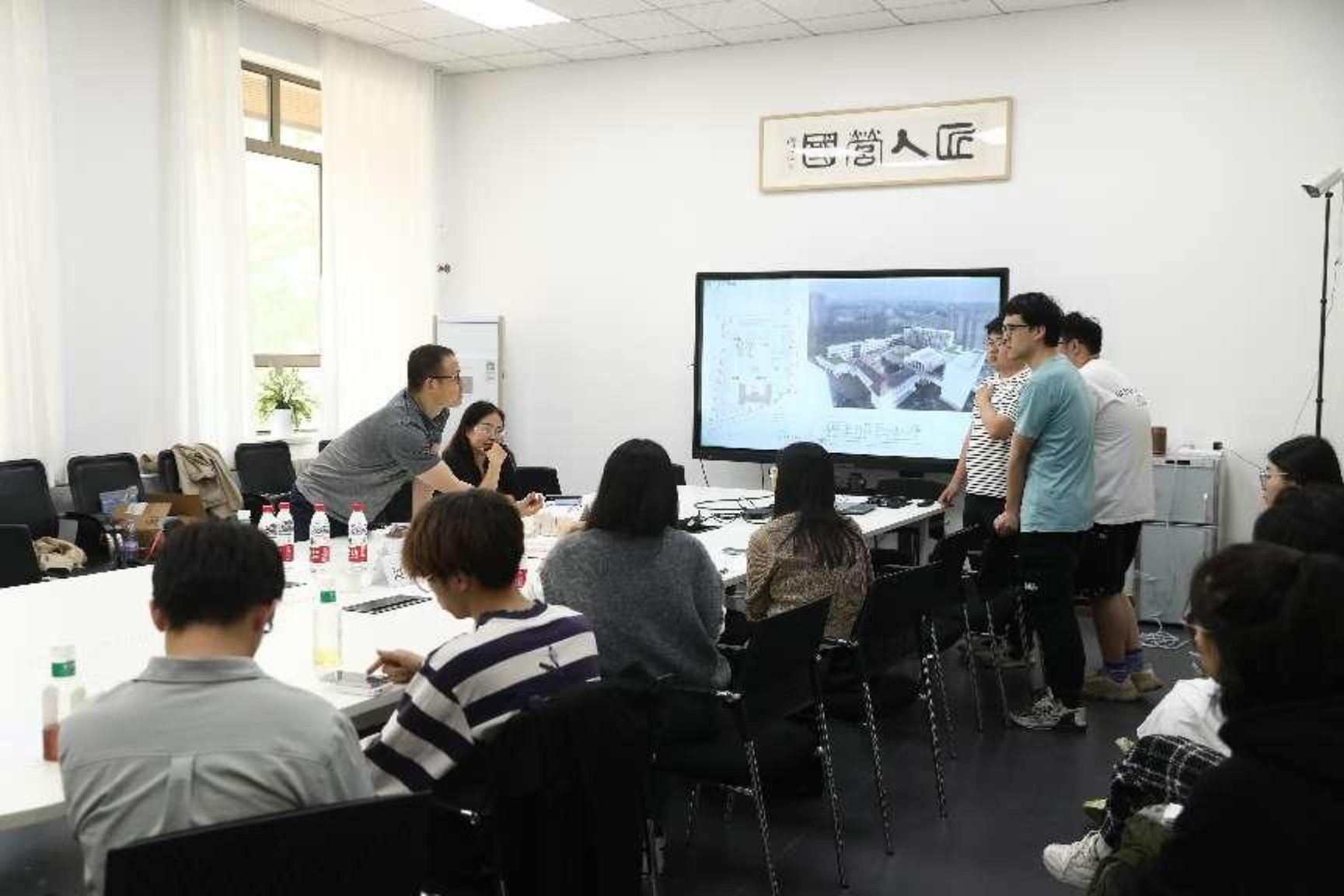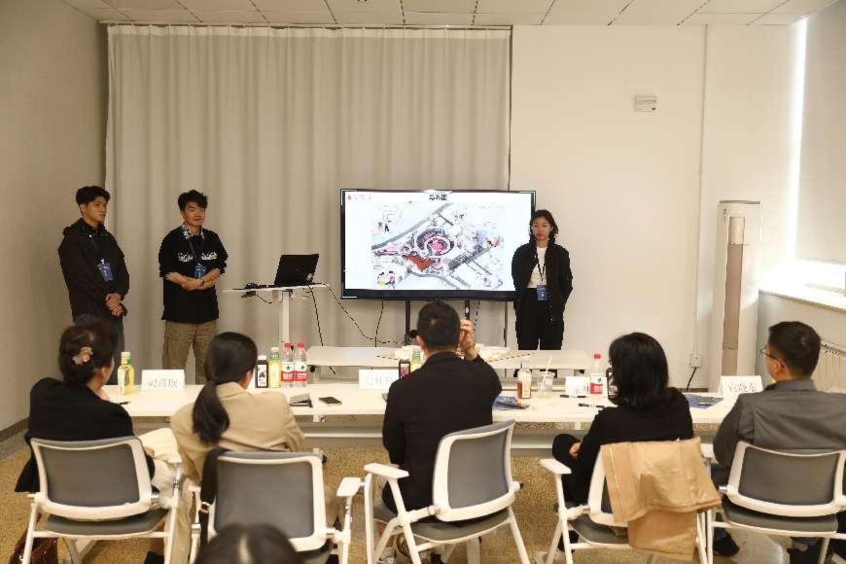 下午,48组同学分为由不同高校组成的7个小组进行本次联合毕设的中期答辩,以促进各校师生之间的相互交流。各组同学就前期调研、设计概念、城市设计、建筑单体设计进行汇报,答辩评委分别点评并就方案优化提出建议。