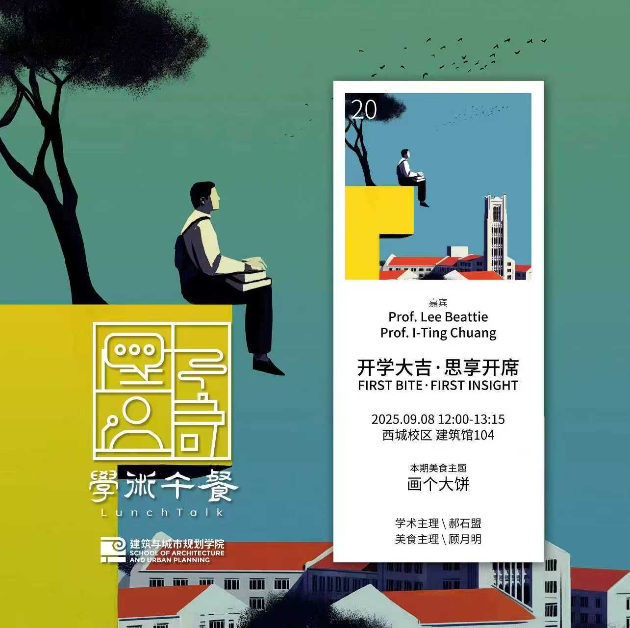 第20期“学术午餐”主题为:开学大吉·思享开席(First Bite, First Insight),学术主理郝石盟老师邀请来自新西兰奥克兰大学的Lee Beattie教授和l-Ting Chuang教授,一起聊聊建筑学的教育。