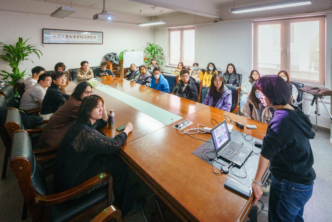 之后,大家落座二层大会议室,聆听由张晓磊老师带来的精彩讲座。张老师为大家讲述了由她担任项目负责人完成的不同时期、不同类型的三个设计项目,用诙谐、精炼的语言,以讲故事的方式,将风景园林行业的发展历程、风景园林师的使命担当展现给大家。李老师和同学们认真听着,眼前浮现出项目设计和施工过程中一幕幕难忘的场景。正如张老师所说:“优秀的风景园林师是多面手,需要具备过硬的综合素质。”面临毕业,同学们需要进一步思考、总结、充电、抉择,为未来发展奠定良好基础。