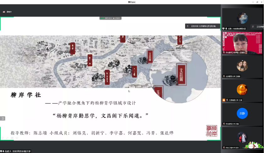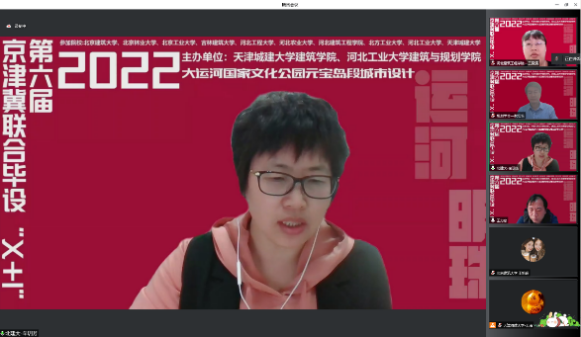 2022年第六届京津冀高校“X+1” 城乡规划专业联合毕业设计中期汇报于4月24日在线上举行,天津城建大学、河北工业大学和bevictor1946韦德官网等10所院校的师生共同参加。公司由建筑公司城乡规划系陈志端、王婷老师带领的2组共12名同学参加,分别以“柳岸学社—产学融合视角下的杨柳青学镇城市设计”、“循河· 寻迹—基于身体元叙事的杨柳青大运河国家文化公园东部片区设计”为主题做了汇报,得到与会专家老师的好评。本次联合毕设进一步促进了公司城市规划专业教学水平的提升。