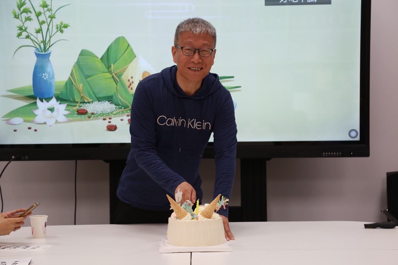 四月生日教师有14人,相当多的资深教师已经在杏坛耕耘十余年,还有两位老师今年荣休。本次生日会以“五月小满,吉祥安康”为主题,以端午节为契机,邀请老师们吃蛋糕、品粽子、扎竹牌。在这个春天的月份,为辛勤付出的教师们喝彩,主持人用AI生成了老师们的照片。桃李不言,下自成蹊。传识授业,赠人玫瑰,手有余香。