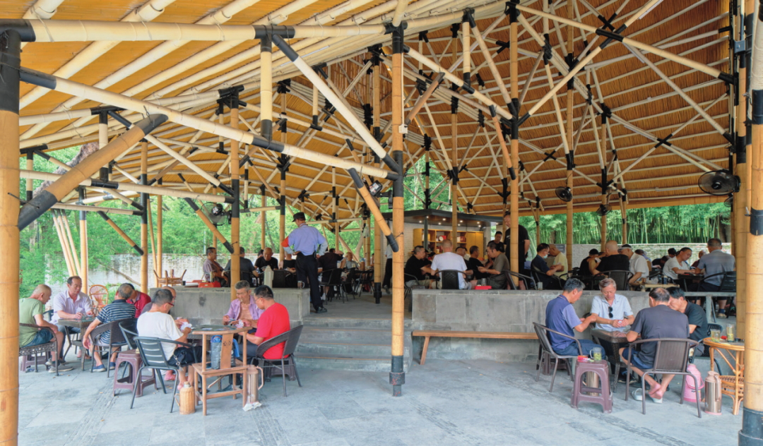 20世纪80年代,冯纪忠在松江方塔园建成的何陋轩,是传承古典营造精髓的典范。何陋轩以绑扎等传统工艺构筑竹结构主体,屋顶采用富有江南民居特色的曲面茅草顶,其质朴风格与园内的宋代方塔、明代楠木厅和清代天后宫等形成“新与旧”的和谐对话,被赞誉为“东方建构文化的诗意表达”。