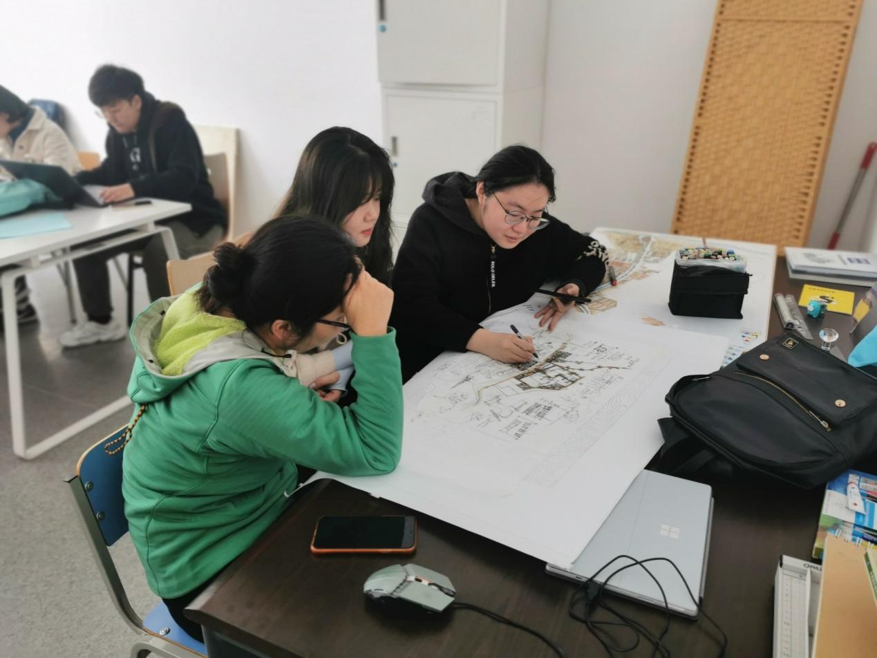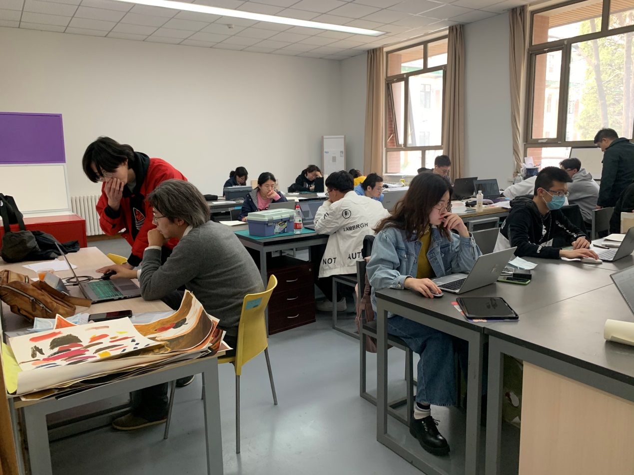 由于建筑公司设计类课程的特殊性,我们的设计类课程全部是在专业教室中进行,同学们大部分时间都是在专业教室度过。老师们授课也是都在专教。以前教师没有专门的桌椅,都是挤在员工的工位上。
