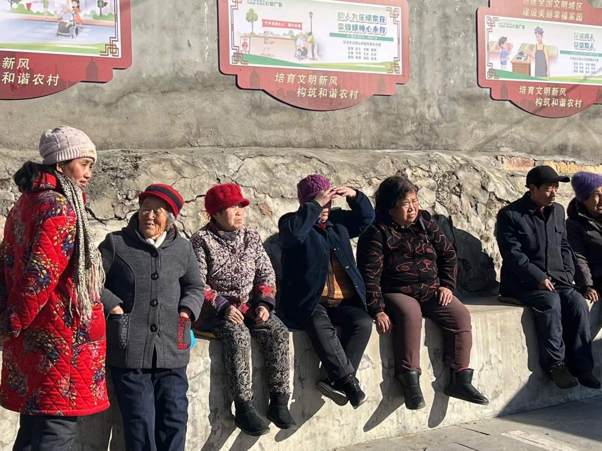 村中晒太阳的老人