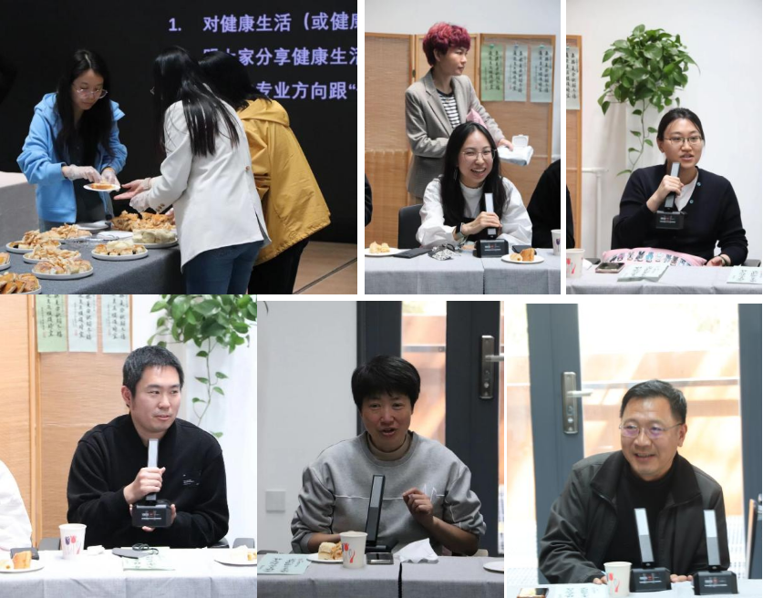 本次生日会由建筑系郝晓赛教授担任主持人。郝老师表达了对老师们健康生活、健康工作的生日祝福,并结合常年深耕大健康设计领域的经历,分享了如何享用北京当前健康城市建设成果的知识,例如通过增加步行、骑车上下班、或爬楼梯等行为,将有益健康的活动融入日常工作生活保持健康,研究表明,有20%的医疗体系的疾病负担,源自人们居住环境导致的不健康生活行为,因此,健康生活行为既能节约环境资源,也能节约医疗资源;此外,鉴于孤独与久坐都是不健康生活行为,建筑公司组织的丰富多彩的集体活动,例如集体生日会、五塔寺漫步打卡和每周的羽毛球活动等,均有助于老师们建立社会联结、增进运动、保持健康,郝老师特别从健康角度呼吁大家积极参与活动。随后,与会老师围绕健康议题纷纷加入讨论,热情洋溢地分享了各自的健康生活经验和相关专业成果。