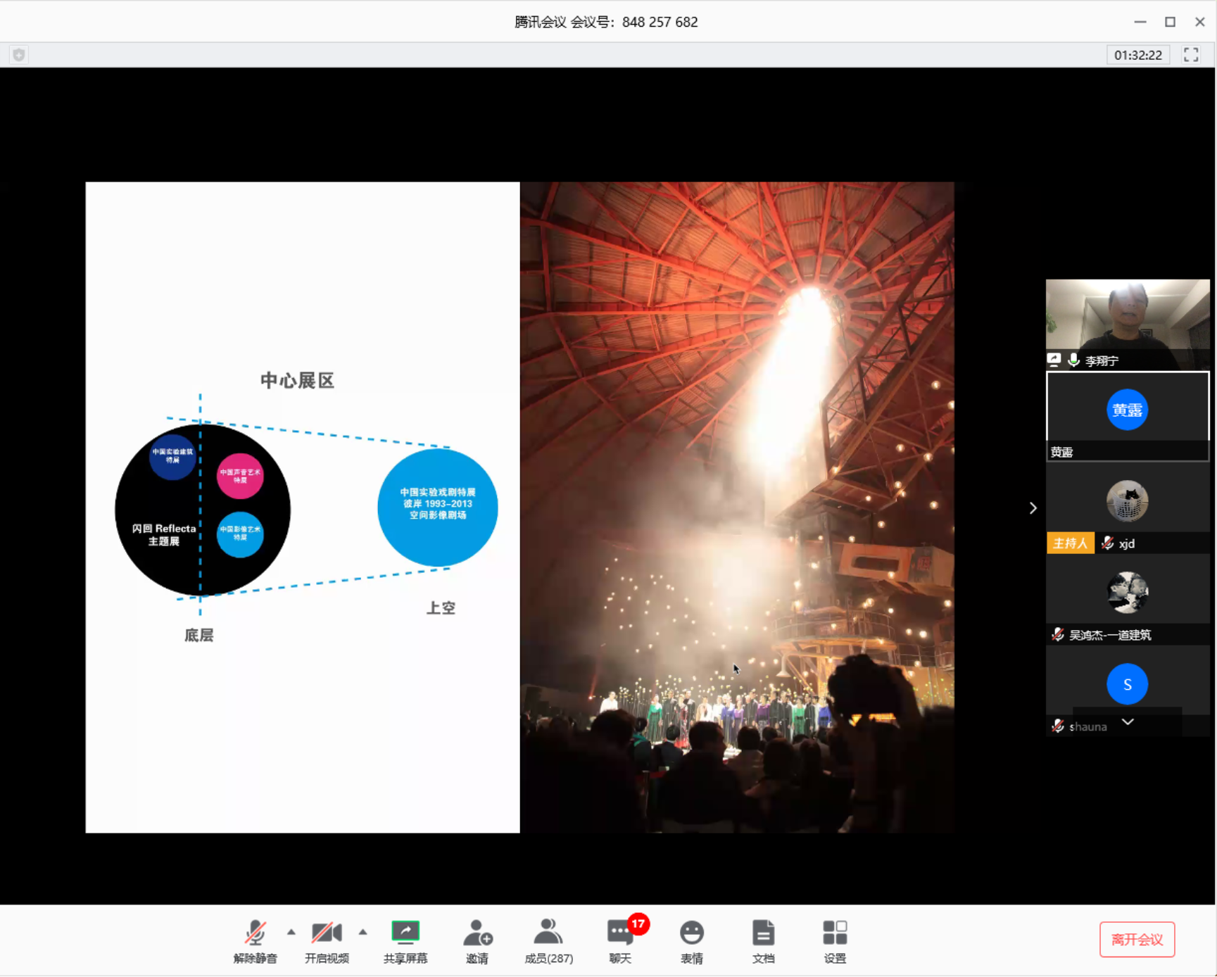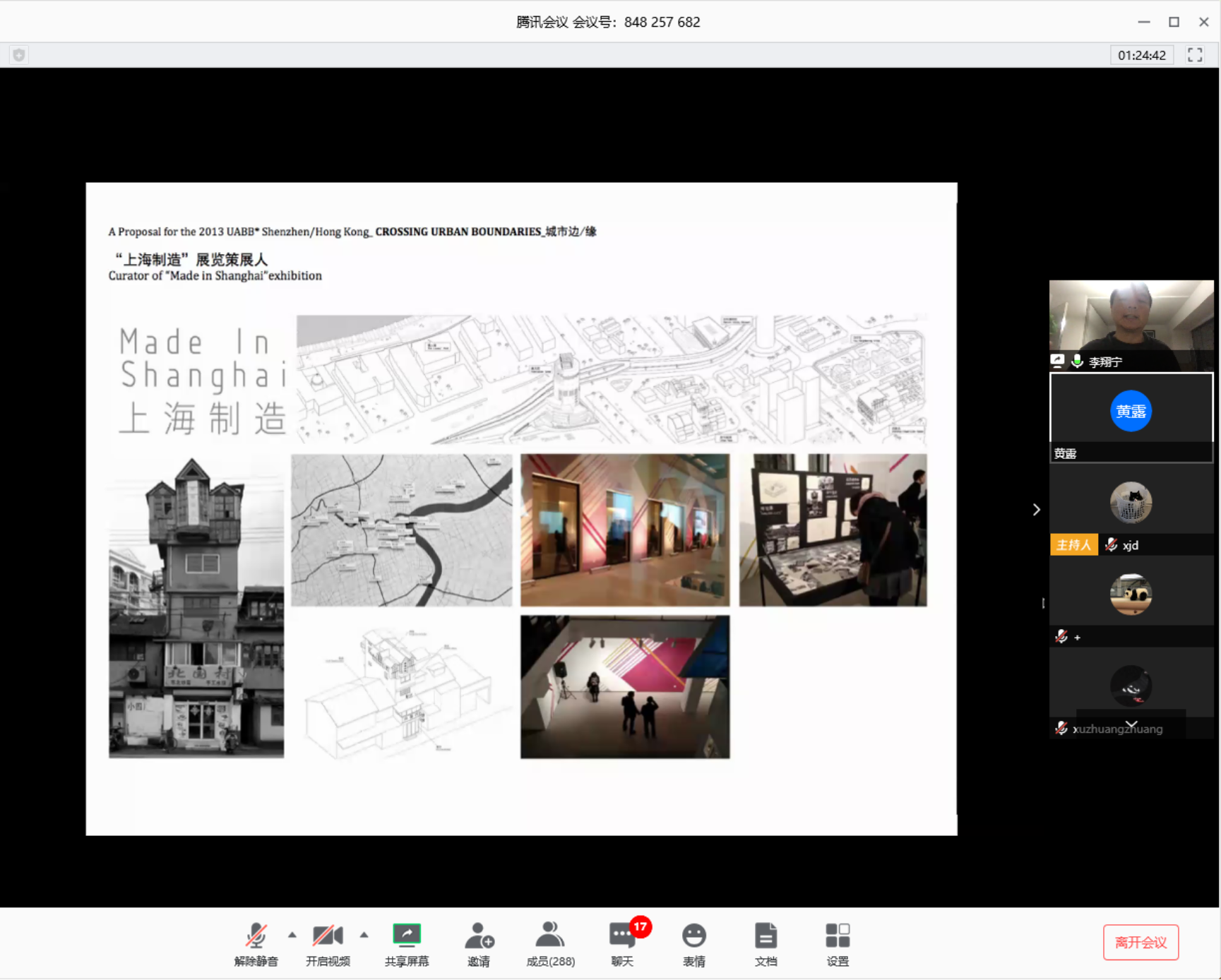 李翔宁从时代特点、内容概况、意义作用等方面,梳理了国内外建筑展览的历史发展脉络,同时,系统介绍了近年来的诸多策展项目,向线上听众阐述其对建筑展览与策展的思考。他谈到,建筑评论与展览相似,均属于连接性的工作,有时能激发新的思路。在自由提问阶段,同学们踊跃发言,提出关于建筑发展与展览的关系、对线上展览形式发展的思考等问题,李老师逐一详细解答。