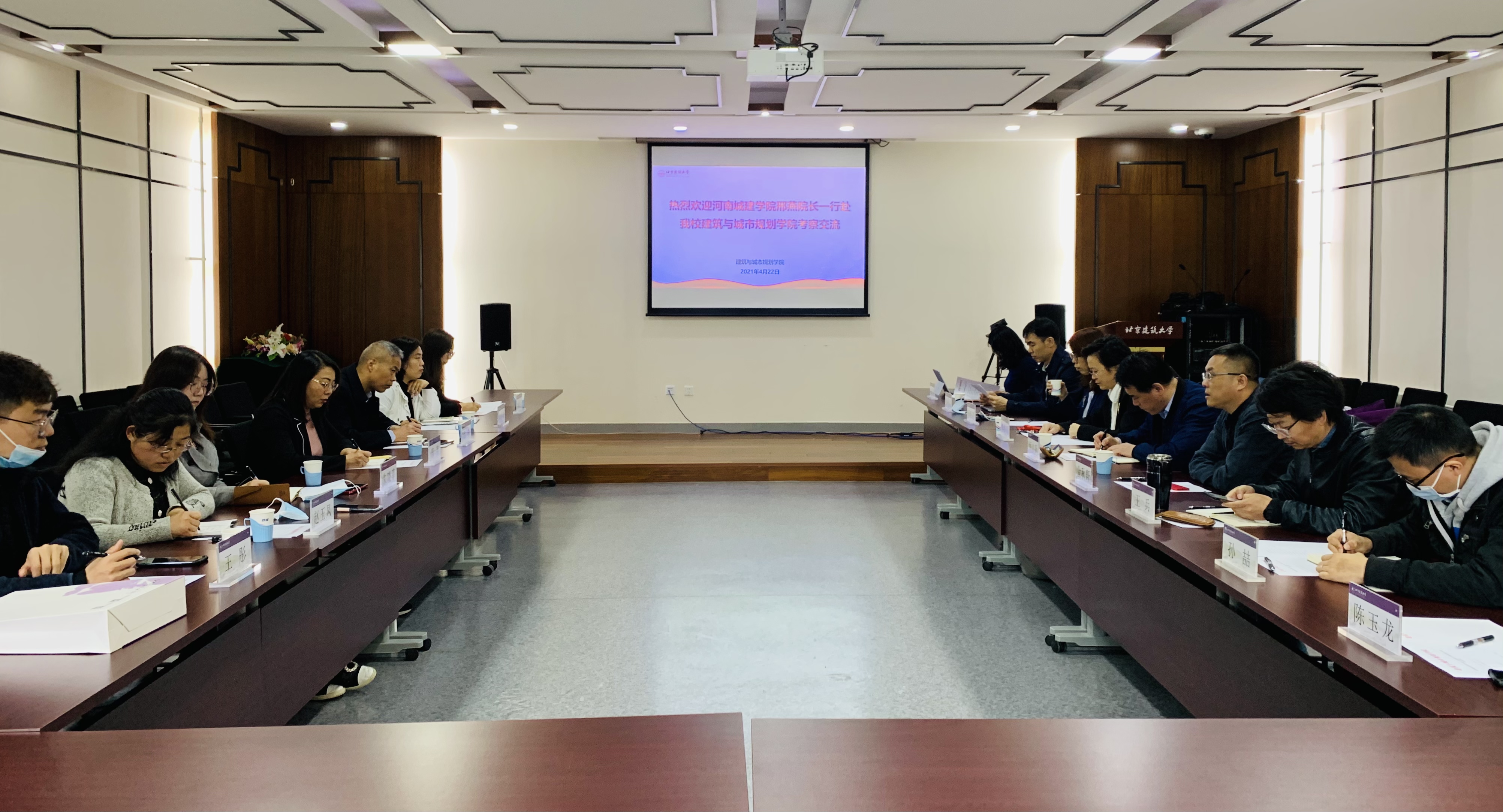 4月22日,河南城建公司bevictor1946韦德官网经理邢燕、党委书记王森一行7人赴公司建筑公司考察交流,公司建筑与城市规划公司党委书记何立新、常务副经理金秋野、副经理李春青及各系部中心主任共同就本科生专业建设、实验室建设等内容畅谈交流,达成两校在专业建设领域合作意向,会议由金秋野主持。