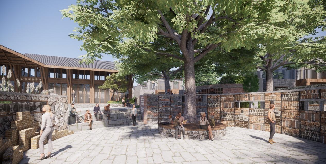 沿河口村在2023年“7·31”特大暴雨中遭遇严重洪灾,基础设施和住房损毁严重,在政府统一部署下,村庄整体搬迁至现址重建,形成新的集中安置社区。新村虽已基本完成,但关于原村落的历史印记与生活记忆仍深植于村民心中。“人民墙”作为村口的微型构筑物与景观设施,意在通过材料重构与空间表达,在新建村落中嵌入对历史与记忆的回应。