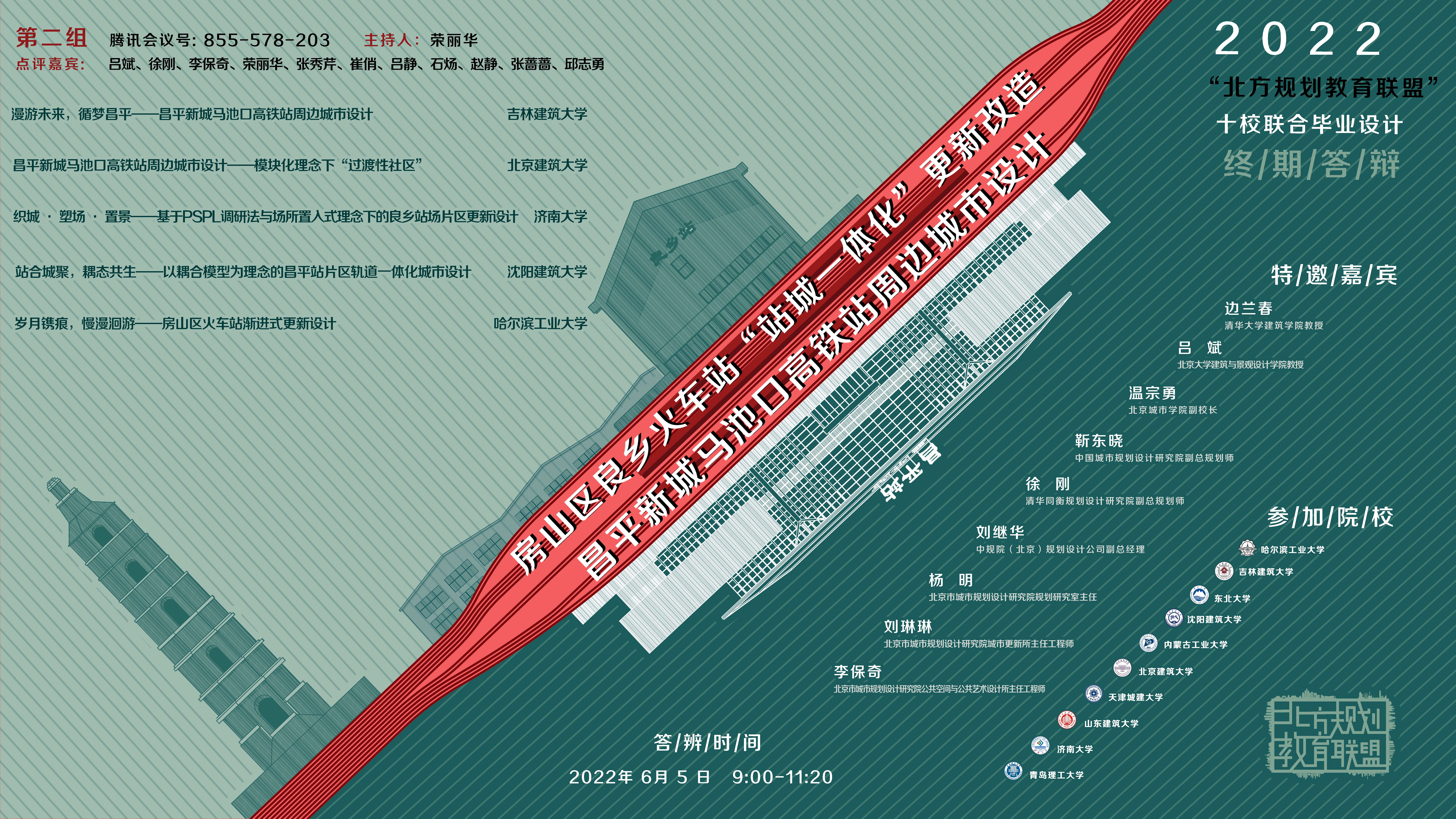 本年度联合毕业设计主题是北京市轨道交通站点周边区域城市更新,包括两处基地,分别是“房山区良乡火车站站城一体化更新改造”和“昌平新城马池口高铁站周边城市设计”,关注城市更新和站城一体化等焦点话题。