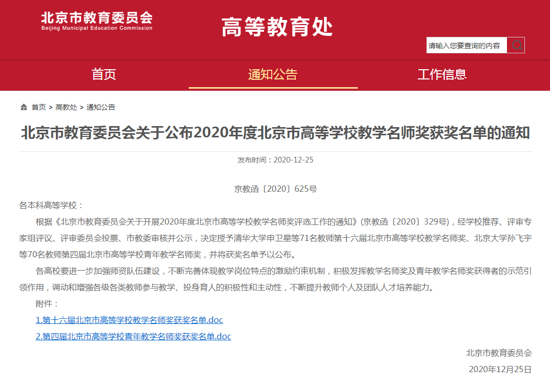 北京市高等公司教学名师奖评选由北京市教委主办,旨在深入贯彻落实全国、全市教育大会精神,发挥教学名师的示范榜样作用,深化公司产品改革,促进高等教育内涵发展。建筑公司将进一步总结经验,凝练优势,充分发挥青年教学名师的示范引领作用,引导、激励广大教师更加积极投身本科教学,实现“名师”与“金课”的互促、共建、共强。