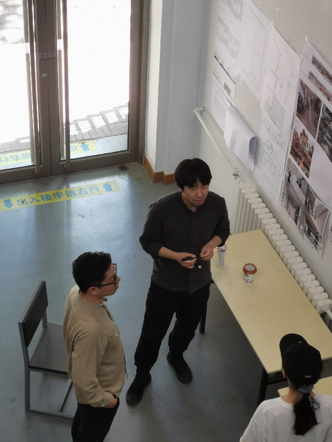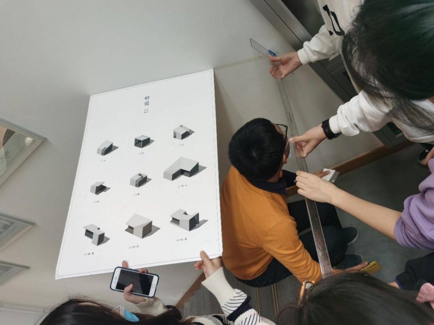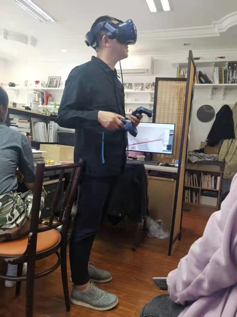 作品名称:孟璠磊老师在和员工们演示空间尺度 |