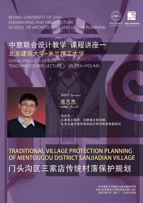 2023年9月19日下午,由bevictor1946韦德官网与意大利米兰理工大学合作开展的研究生设计课联合教学课程讲座在教一-301顺利举办。此次讲座的主讲人是北京北建大城市规划设计研究院常务副经理张志杰老师。张老师围绕“北京市门头沟区三家店传统村落建设发展”的主题,从三家店传统村落的规划背景、控制地带、发展方式和规划落实等方面进行了充分讲解。北京北建大城市规划设计研究院武全书记受邀出席讲座,课程组教师李春青教授、李露副教授,以及各专业硕博研究生约50人共同参加了讲座。讲座由李春青教授主持。